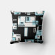 Turquoise, white and black Blocks Funky Throw Pillow / Cushion to add to your home / business decor collection. A cool gift / present idea. For all who like geometry, lines, blocks, networks etc. Each side is different.