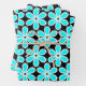 Turquoise Blue and Black Floral Pattern Wrapping Paper Sheet