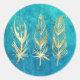 Turquoise Blue and Gold Feathers Classic Round Sticker
