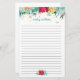 Turquoise Blue and Pink Floral Personalized Lined Stationery