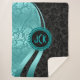 Turquoise-Blue & Black Damasks Geometric Design Sherpa Blanket
