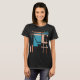 Featured is a geometric, contemporary, abstract art motif, composed of square and angular shapes and lines, somewhat like a labyrinth, in turquoise blue, coral and rust with taupe elements, inspired by the Mid-century Modern style. Pictured here on a black t-shirt, with other styles and colours available. This is a soft but polished and aophisticated, artistic design, which projects a dynamic but calming quality, a versatile and classy addition to your casual and everyday wear (whether at home, socializing with friends, playing sports, or running about town). The shirt design as "wearable art" also expresses a sense of your individualized style, contributing to a feeling of being "together" and creative in your personal wardrobe choices.