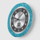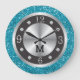 Turquoise Blue Glitter Silver And Black Monogram Large Clock