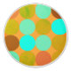 Modern circle pattern with turquoise blue greens, oranges and rust colours.
