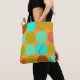 Turquoise Blue Green & Orange Circles Monogram Tote Bag