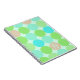 Modern circle pattern with turquoise blue greens, oranges and rust colours.