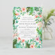Small coral pink flowers are nestled in turquoise blue botanical leavess. A few darker olive green leaves provide contrast. The lush border surrounds your wedding details. The back is solid turquoise blue. This wedding invitation is part of the Tropical Botanical Collection. It contains the DIY templates that will let you easily create a colourful botanical wedding suite. You should see a link to the collection on this page. If you don't see the link or you need help with an item, please contact me.