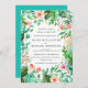 Turquoise Blue Pink Floral Botanical Wedding Invitation