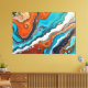 Turquoise blue, rust and gold paint abstract canvas print