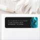 Le bord droit de cette élégante étiquette d'adresse de retour de faire-part de mariage moderne comporte une bordure turquoise d'aquarelle bleue ornée d'une parties scintillant en faux argent. Le texte personnalisable combine des polices de serif romaine gris argenté et des polices de cuivre sur un arrière - plan non noir.