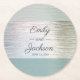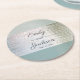 Turquoise Blue Silver Sea Glass Custom Wedding Round Paper Coaster