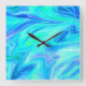 Turquoise Blue Tropical Abstract Square Wall Clock