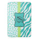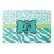 Turquoise Blue White Zebra Leopard Skin Monogram Bath Mat