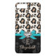 A cute and girly leopard spot pattern in gold, black and cream hues. A printed bright turquoise aqua blue ribbon look design with a faux heart shaped "diamond" encrusted by solitaire bling on the bow makes this extra girly and stylish. It can be customized with your monogram and initial and personalized with your name in gold on the black background with a subtle damask pattern. Please, note that this design is printed flat and will look as shown in the preview image. No three dimensional embellishments have been added to this design. Artwork © Chrissy H. Studios, LLC. All rights reserved.