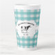 Savourez votre café du matin avec cette tasse de latte de vache Turquoise de Buffalo rustique. Le design de la moquette comprend une vache de ferme sur une étiquette élégante et du texte personnalisé pour que vous puissiez personnaliser avec votre nom de famille contre un arrière - plan motif en vichy. Autres éléments de décoration disponibles avec ce design.