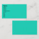 simple plain turquoise colour business card. Colourful card design for business or personal use. Add your MySpace, Facebook or LinkedIn information to this artistic profile card. Or use this colourful art card for your own unique business cards or calling cards. This digital abstract art design will definately make your business card stand out with your friends, clients and customers. Business cards are made with 2-sided, full colour printing. 10 types of card stock are available including standard, premium or luxury. Business cards are customizable, you can change the font style size and colour. Volume Discount available when you buy in bulk.
