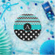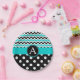 Monogram design with turquoise, black and white chevron pattern and black and white polka dots. Resizable circle frame for custom initial or remove it completely and add text to the turquoise stripe! PinkInkArt original!