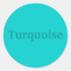 The word Turquoise is printed in turquoise on a light turquoise, teal background, on stickers.