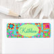 Original quilt art combines favourite quilt blocks plus unique blocks to form a quilt design with vibrant and dynamic colours on a turquoise aqua blue background. This sticker can be personalized with your name, business name or other words of your choice on a light green strip. If you don't want to personalize, you can remove the colour strip and text. This sticker is a great way to show off your love of quilting and fabrics and makes a great gift for a quilter or quilt lover. Fully customizable and personalizable. Quilt art is from fabric and quilt designer Phyllis Dobbs and is in a fabric collection from Quilting Treasures.