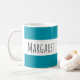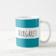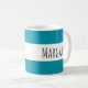 This personalized mug is designed to deliver a touch of individuality to your daily routine. The central feature of the design is a wide, customizable band that wraps around the mug, ready to be adorned with a name, rendered in a crisp, contemporary sans-serif font. The font's size makes a bold statement, ensuring the text is readable from across any room, making it a standout piece in any setting. The customization feature on this mug makes it a perfect, thoughtful gift for friends, family, or colleagues for any occasion, be it birthdays, holidays, or professional milestones. It also serves as a charming addition to anyone's kitchenware, office desk, or as a keepsake for special events.In the spirit of personal expression, the mug is designed to be offered in a variety of colours. Regardless of the chosen hue, the design will maintain its distinct clarity and impact. The colours are selected to complement the clean lines of the text, ensuring that each personalization stands out with elegance and simplicity. This mug is not just a drinkware item; it's a personal statement and a daily reminder of individuality and thoughtfulness. It is a blend of utility and personal expression, making it an essential item for anyone who values both practicality and a personalized touch in their daily lives.