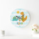 Turquoise Dinosaur Boy Nursery Roar Kawaii Cute Large Clock