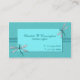 Chic business card, with graphics of a turquoise textured looking background, and two dark turquoise embroidered looking dragonflies decorating the edge of the lighter turquoise text area. Text in teal, on the front and light teal on the back, is ready to personalize for yourself.
