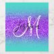 Turquoise Edge Ombre Violet Glitter Monogram Wine Label