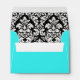 Turquoise Envelope with damask pattern inside. Wedding invitations fit in this envelope and can be fully customized. Matching wedding stationery is available in this store.