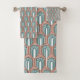 Cette serviette est décorée dans un style art déco d'arcades et de Ys renversé répétant à travers le design en turquoise et en cuivre sur un champ de blanc. Vous voulez des couleurs différentes ? Message-moi.