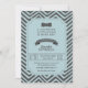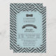 Ce Baby shower Invitation dispose d'un arrière - plan Chevron turquoise/bleu et gris/gris avec une cravate arc et un cadre bleu contenant les détails de la douche dans le type moderne.