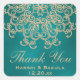 Une belle JEWEL TONED turquoise paon bleu turquoise et or fête merci étiquettes et autocollants avec un sari ornemental d'inspiration indienne exotique comme motif médaillon avec un lotus et le design floral SUNBURST. Cet autocollant élégant et magnifique LUXE AND UPSCALE moderne de style indien est parfait pour toute occasion formelle ou spéciale, y compris mariage, fiançailles marié ou couples douche et fête d'anniversaire, anniversaires ou toute autre affaire élégante avec un thème oriental indonésien marocain ou arabe nuits ALADDIN. © Chrissy H. Studios, LLC. Tous droits réservés.
