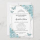 Turquoise Floral Butterflies Silver Quinceañera Invitation