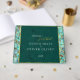 Wedding Guest Book floral pattern teal coloured flowers with golden streaks and rust and deep emerald green textured background. Vintage Wedding Guest Book. Turquoise Flowers and Deep Emerald Green Collection.