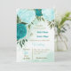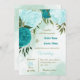turquoise flowers green leaves wedding invitation