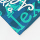 Pretty icy blue and shades of turquoise teal aqua with dark blue and curly swirly white text, great for girls or kids.