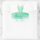 Gorgeous watercolor turquoise gown with gold glitter border and elegant script font on all personal information. Colour of the script is beautifully paired with the colour of the gown.