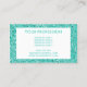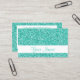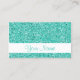 Stylish digitally created aqua turquoise glitter pattern background. There are personalizable text areas for a name, profession and contact information. Notice: The glitter is not real. It is a printed image mimicking the look of glitter.