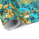 Turquoise Gold Black Acanthus Leaf Floral Elegant Wrapping Paper