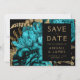 Turquoise Gold Floral Photo Wedding Save the Date Invitation