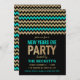 Turquoise & Gold Glitter Chevron New Years Party Invitation