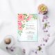 Beautiful roses, tulips, anemone, cosmos flowers with leaves and twigs forming rich bouquets. Turquoise watercolor ombre. Shades of pink, peach, green, turquoise. Fine art watercolor artwork. Elegant gold lettering. Joyful and festive wedding design, ideal for summer wedding. Pink (coral) and turquoise s a timeless classic wedding colour theme.
