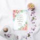 Beautiful roses, tulips, anemone, cosmos flowers with leaves and twigs forming rich bouquets. Turquoise watercolor ombre. Shades of pink, peach, green, turquoise. Fine art watercolor artwork. Elegant gold lettering. Joyful and festive wedding design, ideal for summer wedding. Pink (coral) and turquoise s a timeless classic wedding colour theme.