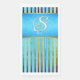 Turquoise, Green, and White Stripes Paper Guest Towel Napkin. A blue, monogrammed modern, chic, and contemporary pattern design to enhance your decor for the master or guest bathroom. Change the monogram, background colour, or just enjoy the pattern. Complimentary towel sets, bath mats, and accessories available.