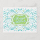 The text on the back of this elegant, yet bright and cheerful, turquoise or aqua blue (robin's egg blue), lime (chartreuse) green and white abstract floral recipe card for the bride to be is fully customizable. You can change it using the customize it option. This pretty recipe card can be enclosed in the matching bridal shower invitation so that wedding shower guests can fill out the back with their favourite recipes and bring the card with them to the shower as a wedding keepsake for the bride to be. The matching invitation is shown below. NOTE: This is a flat printed design without any 3D or raised embellishments.