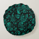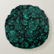 Turquoise green polka dot pattern on black round pillow