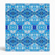 Binder in a mosaic tile pattern in soft shades of turquoise and cobalt blue, with a light silver grey background, accented with white