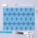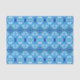 Tissue paper in a mosaic tile pattern in soft shades of turquoise and cobalt blue, with a light silver grey background, accented with white