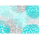 Turquoise Grey Dahlia Floral blooms blossoms Fabric