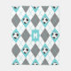 turquoise grey white soccer themed argyle pattern fleece blanket