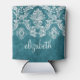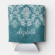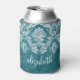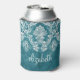 Turquoise Grungy Damask Pattern Custom Text Can Cooler